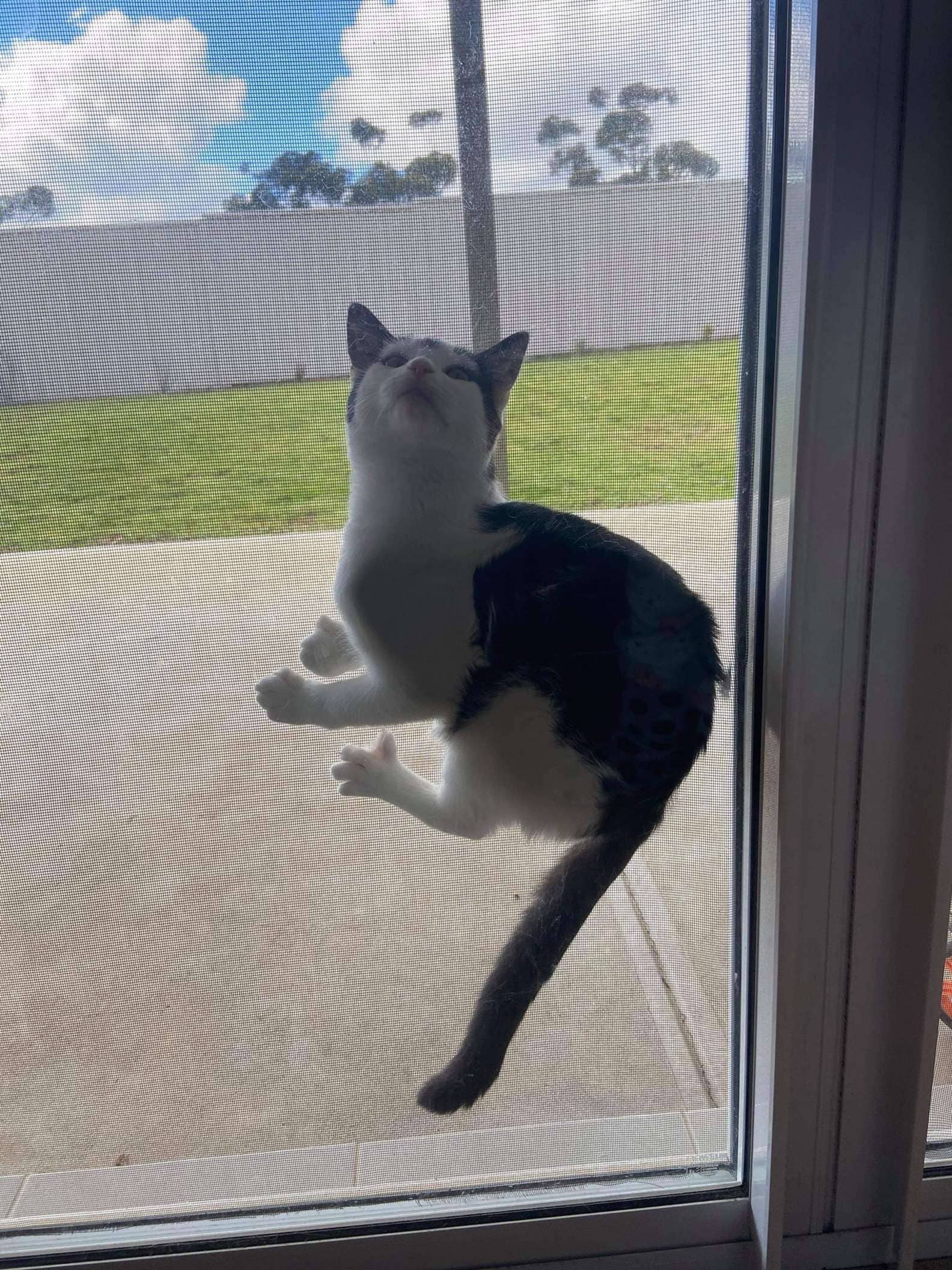 Tage and Tali are two adorable cats who have always loved rolling around on the back patio whenever their family is hanging out outside. When they are not allowed to go out for whatever reason, they are definitely disappointed and upset.