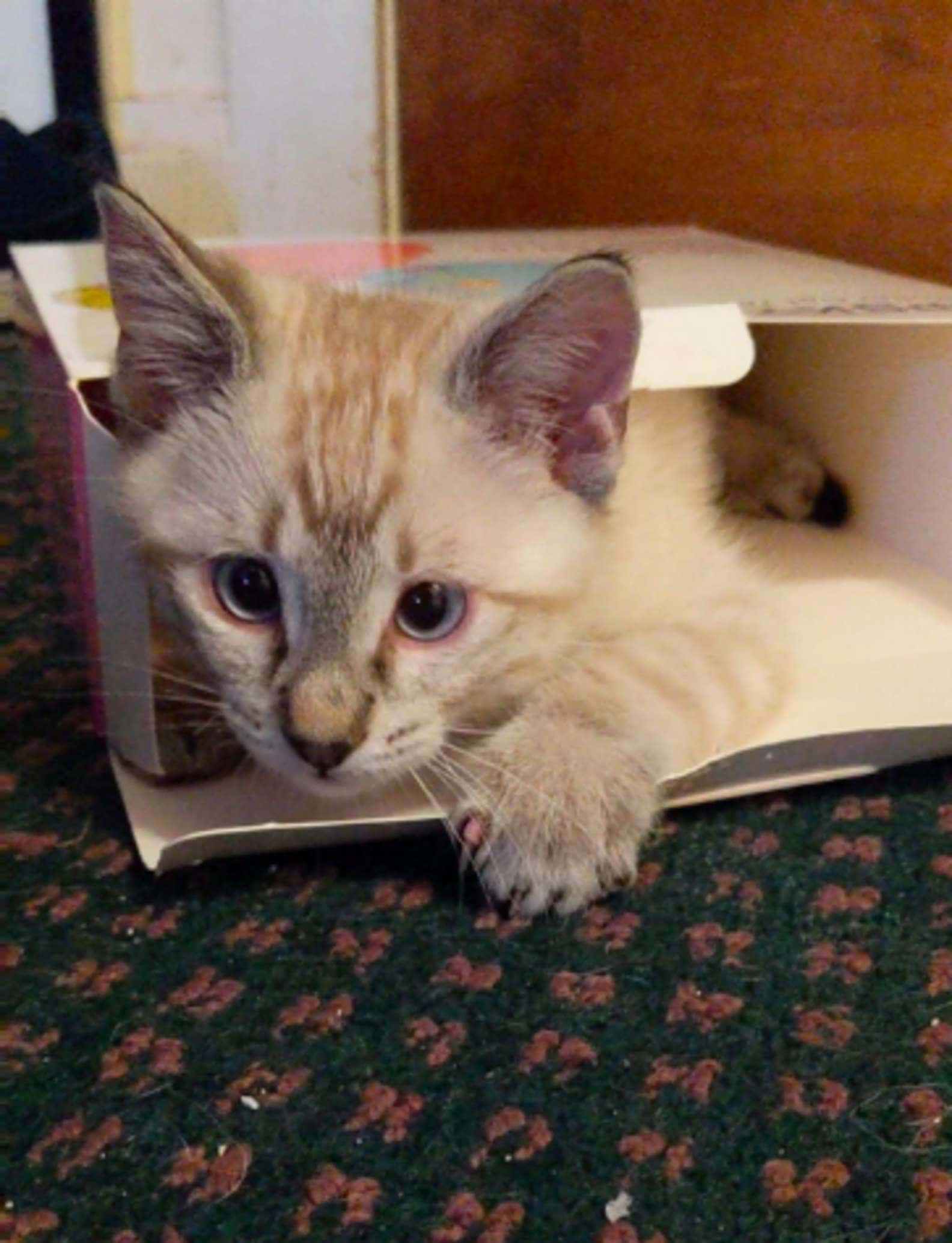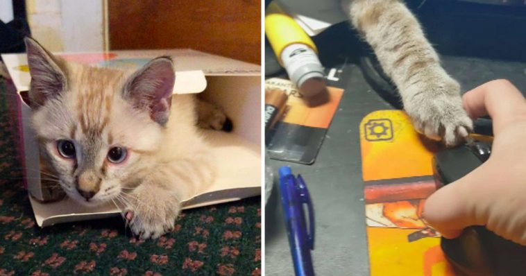 Brenna Telaroli first met Mokou the cat when he was an 8-week-old kitten. He was sick and needed emergency surgery due to being born with a large umbilical cord hernia. At first, Telaroli was worried about Mokou’s condition, but when she saw his beautiful blue eyes, she knew she couldn’t resist him and would do anything for him.