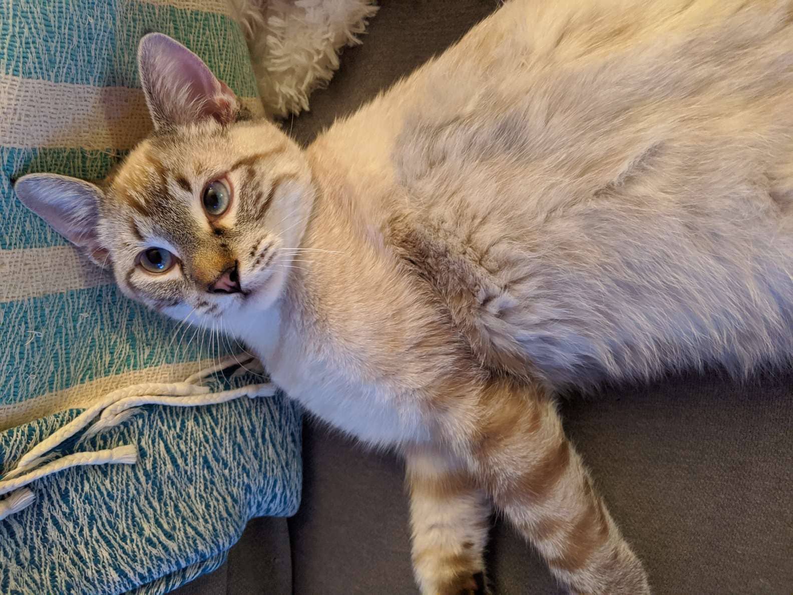 He constantly supervises his mom to ensure that she always pays attention to him. “He has to be where I am and see what I am doing at all times,” Telaroli said. “Mokou feels it has to have his stamp of approval or he will have a meowing fit.”