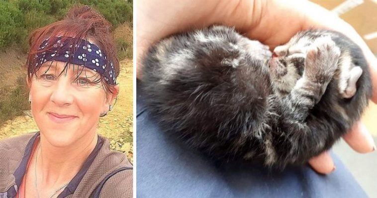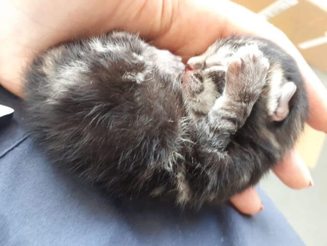 Kendera knew she couldn’t leave the baby behind. So, she quickly pooped the kitten into her sports bra and took him to Matt Smith Vets in Chesterfield, where he would be taken care of and loved.