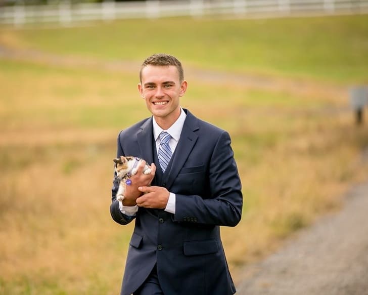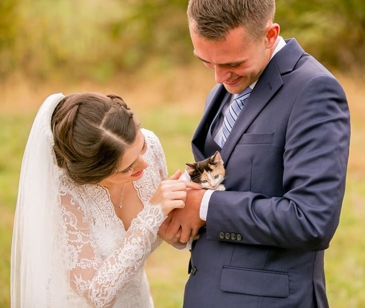 Luckily, he found 2 abandoned kitties wandering around his neighborhood. He adopted a kitten and found the other a new home. He named the kitten Chloe and decided to surprise his future wife with her on the big day. His 92-year-old grandmother kept Chloe for a week so Kaylee wouldn’t see her.