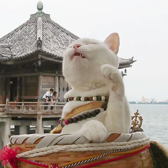 When you visit the Nyan Nyan Shrine, you’ll be greeted by the current cat monk named Koyuki. The cat monk Koyuki is not the only feline at the shrine. There are plenty of cat assistants there too. Although the cat assistants aren’t as popular as the head monk, they’re just as cute.