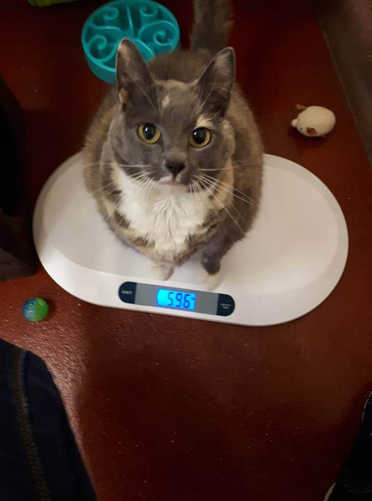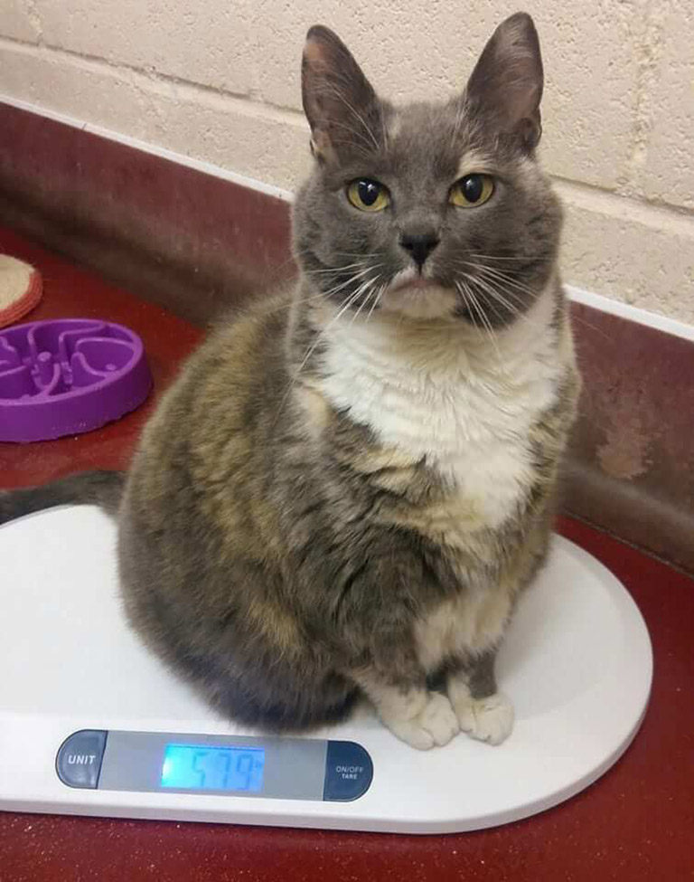 Mitzi then went to live with her third owner, who helped her slim down and she dearly loved. During her time with this owner, Mitzi went from 17 pounds to 11 pounds. Sadly, her owner passed away in August 2018. The heartbroken cat found herself back at the shelter to look for another forever home.