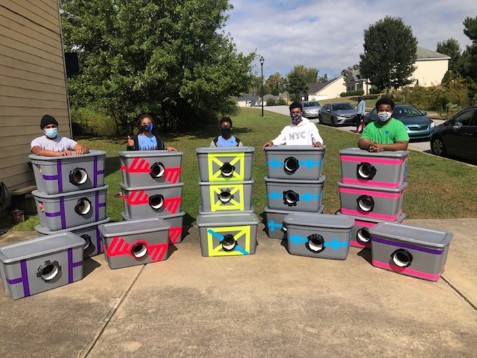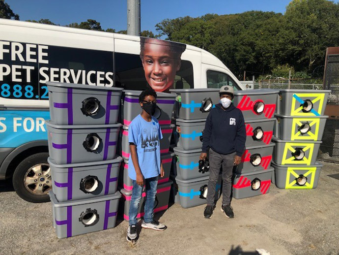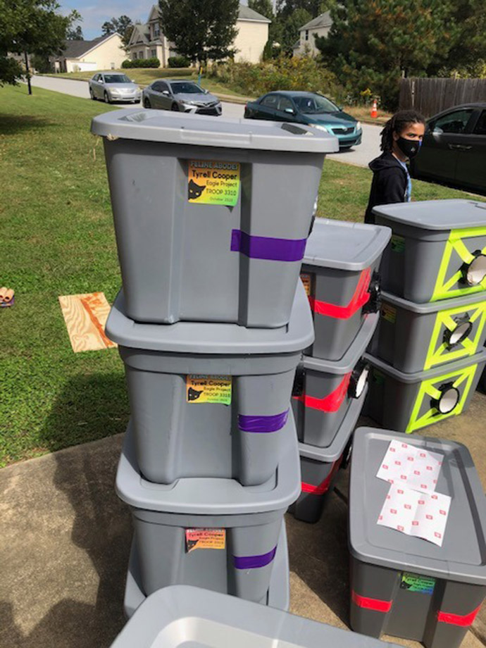The boys used storage totes to create multiple insulated cat shelters which they then donated to LifeLine Animal Project who were thrilled to receive the clever gifts.