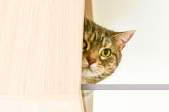 There’s a small space under the stairs so your cats have somewhere to hide and relax if they feel overwhelmed.