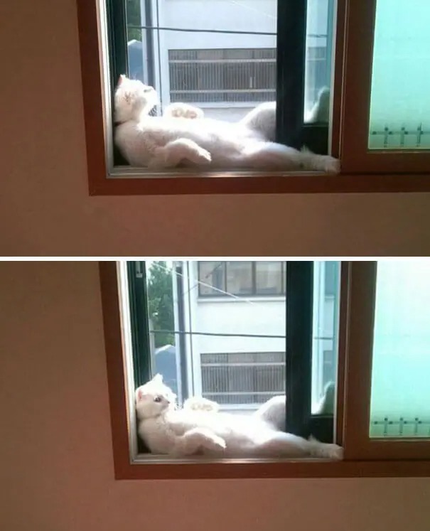And if you miss your kitties while cooking, you can always peek at them through the handy window that’s been installed so that you can keep watch over the bedroom/livingroom.