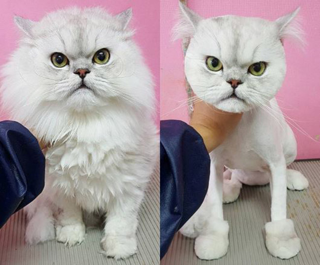 These cats are pissed off. There’s no nice way to put it. Their owners chopped off their furs, and have basically left them feeling either naked or stupid. Their long locks have been cut, never to return again. Because, let’s face it, it doesn’t always grow back the same….