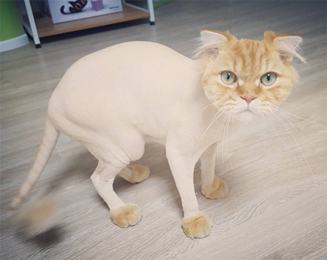 This outraged orange floof who’s feeling a little… exposed: