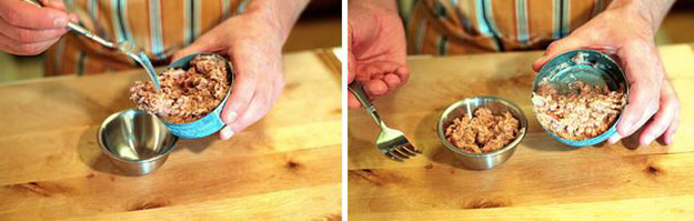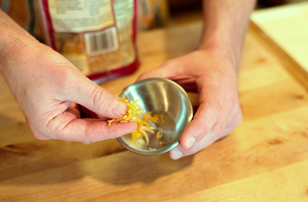 3. Take a pinch (about 1 teaspoon) of shredded cheese.