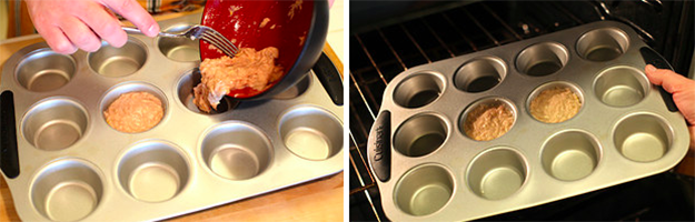 6. Using a muffin tin, apply cooking spray to prevent cake from sticking.