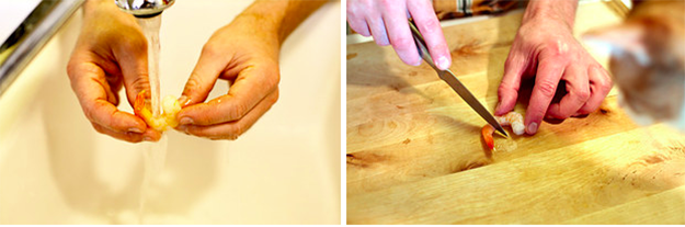 9. While you wait, rinse off the shrimp and cut off the tail.