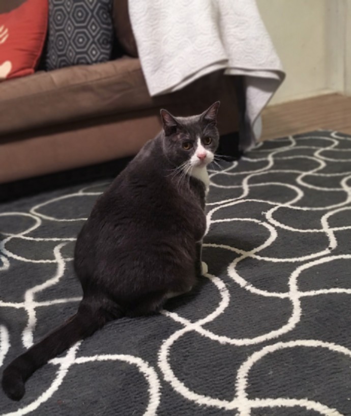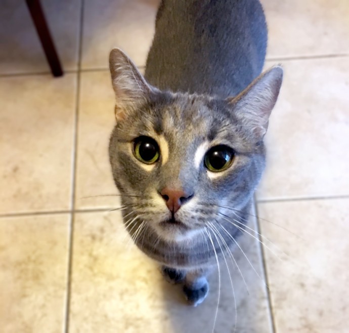 “Samson: All gray. The most handsome cat you’ve ever seen. Looks like the cat was drawn by a Disney animator.”