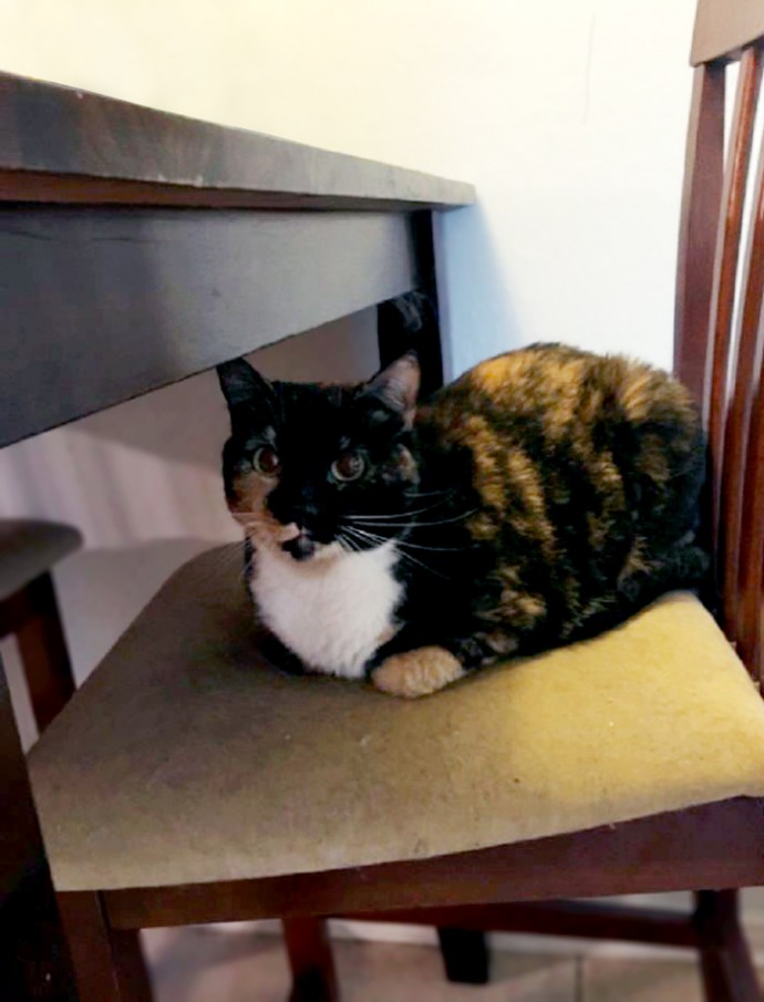 “Dixie: Calico. Looks like she would speak with a squeaky voice. Very short. Will use her nails to love you.”