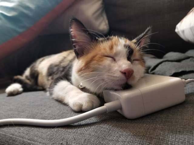 “She lives to eat instead of eating to live,” Allison Riebel, Nellie’s mom told The Dodo. “She loves her cat food and she loves her cat treats. We use her love of snacks to practice learning tricks. She’s become good at sit, high five and loves to play fetch.”
