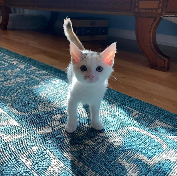 While the infection and stump healed over time, it became clear that Jack will grow up as a tripod. The kitten was very determined to get bigger and stronger. It moved around on three paws, but that didn’t stop him enjoying life every day. She ate and grew and played in the center, soaking up all the love she can get.