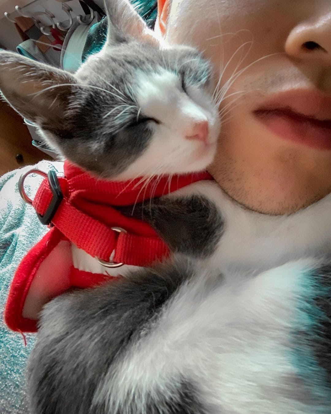 One Sunday morning, Jo was walking his dog outside when he saw a little kitten wandering the streets all alone. At that moment, his dad instincts immediately kicked in. He knew he had to do something to help the poor kitten. Jo took the kitten home and named him Leo.