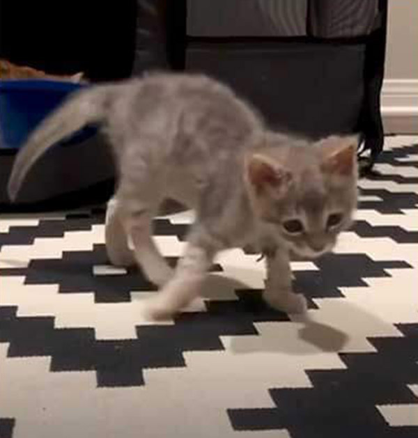 Melody was found by a good Samaritan and was taken in by Keely Thomas, a kitten foster who has dedicated her whole life to helping poor animals. She was born with swimmers syndrome – a congenital condition that causes her legs to splay out, so she was not able to put them forward and walk.