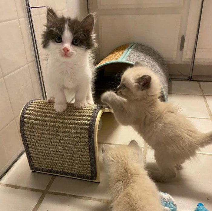 Laure held her breath every morning when she went to visit them. Day by day, they greeted her with purrs and love. She kept their bellies full and looked after them by the hour. After two weeks, the trio reached a milestone. They were finally out of the woods, with their weight back on track. No kitten showed symptoms of the illness, and Laura breathed a sigh of relief.