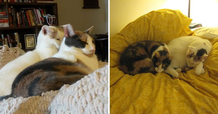 Their owner shared that she often found them sitting, sleeping or hanging out in the exact same position. She loved to see them being together, so she often captured their great moments on camera. Unfortunately, Callie passed away, so she no longer has any opportunity to photograph them together.
