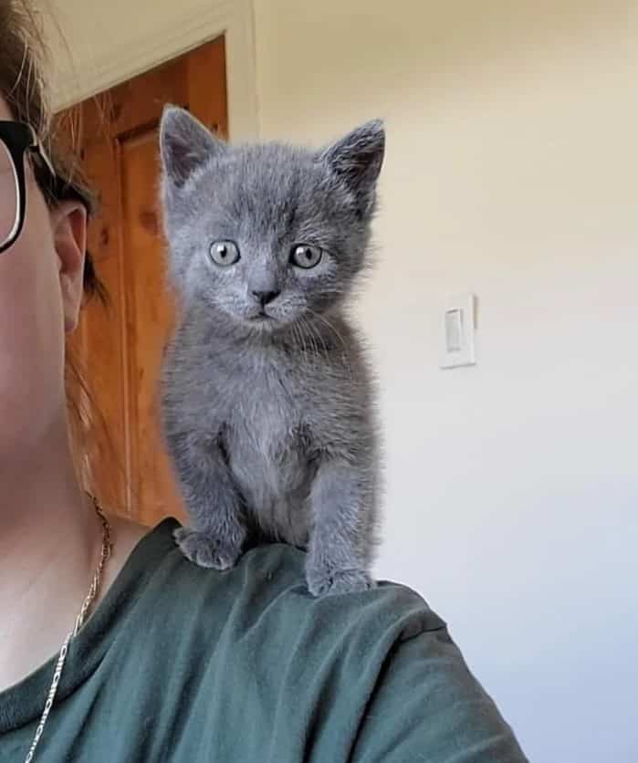She was born in a litter of five to a rescue cat in the One Cat At a Time shelter in Quebec. Out of the five kittens, Myrtle was the one not feeding properly. She was underweight and malnourished, and couldn’t latch on properly. The staff supplemented that with a syringe full of milk, but it didn’t make a big difference.