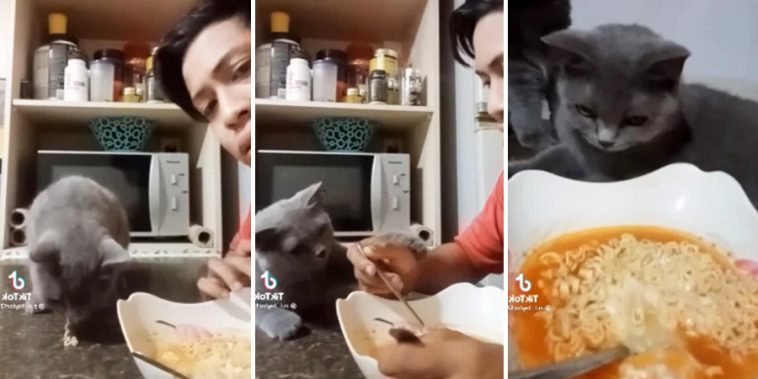 Taking to social media, @zul_taylor 12 begins the video saying “IDK why my cat loves Maggi.”