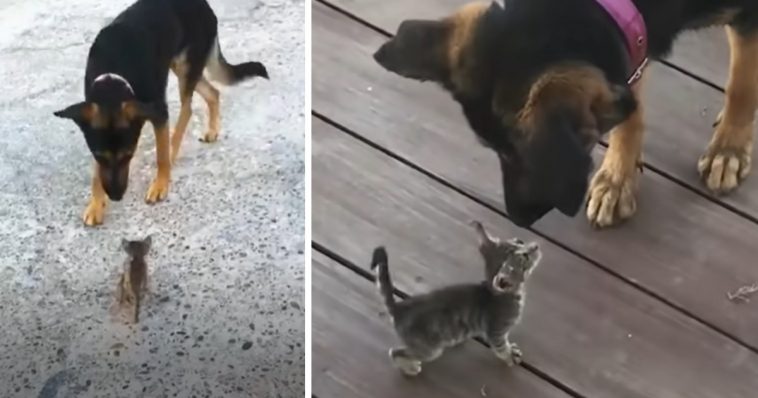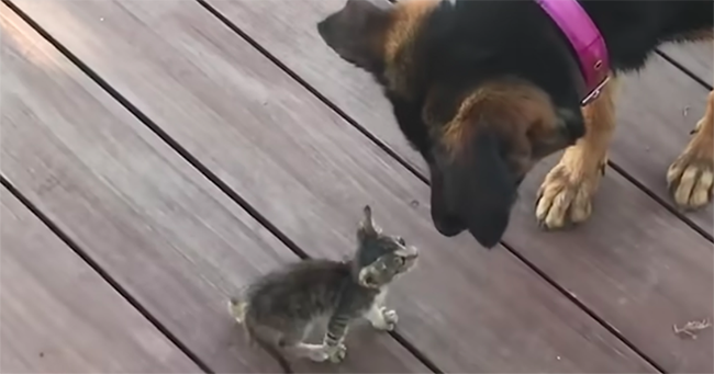 According to Salute’s mommy, they were out walking when they saw this kittycat. She saw to it that Salute was mild with it. While they were on their way back within, the kitty followed them in which was the begin of a gorgeous connection in between both.