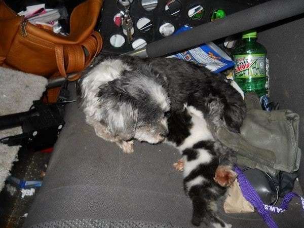 Officer Michelle Smith from Anderson Animal Control, South Carolina, received a call about a dog that wouldn’t stop barking for several hours. When she came to the scene nothing could prepare her for the incredible and very rare sight. At the bottom of a steep embankment along a deep ravine, a dog was nursing a tiny kitten, writes moneysavingbasics.