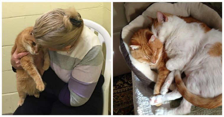 A woman decided to adopt a senior cat from an animal shelter then came back for his old best friend who was waiting for his forever home.
