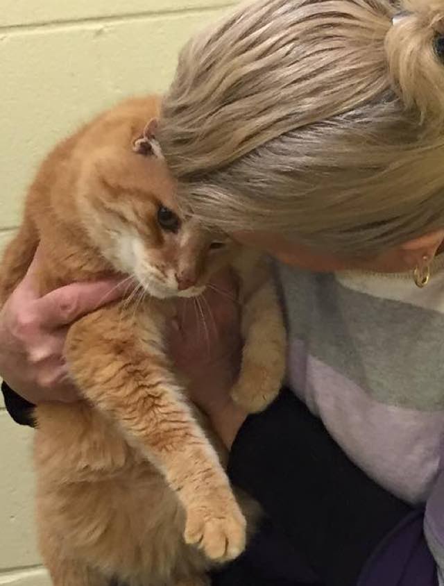 “About a month ago, this lady adopted Mojo, an 11-year-old cat who came to the shelter with another cat, Max, who is 16,” the shelter wrote on Facebook.