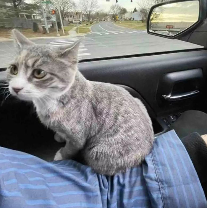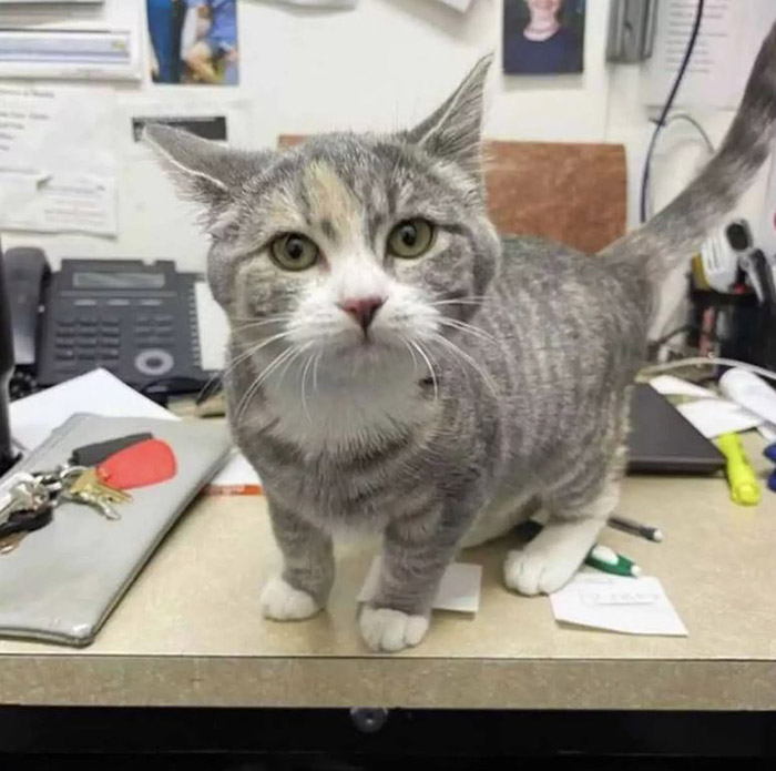 There was an animal Hospital in the nearby shopping centre so Downs thought that she must’ve escaped from there. He took her over and asked if anybody was missing a cat, but nobody claimed her.
