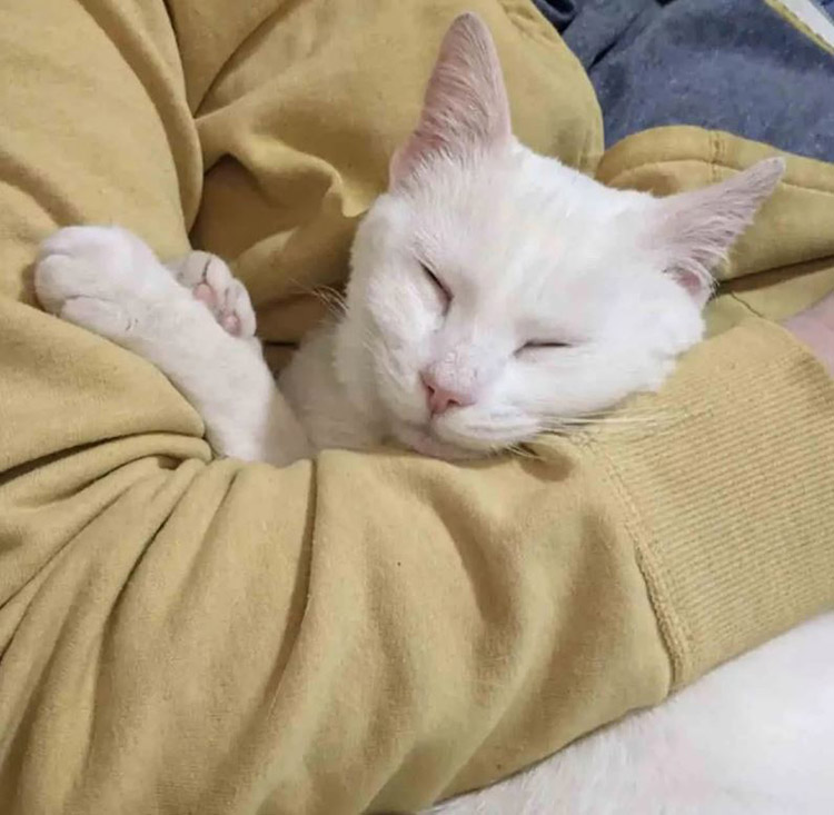 The moment Ally arrived in her new surroundings she was made to feel very welcome. She adored her foster, Monica, and her favorite pastime was curling up on her arm in her lap for a nap.