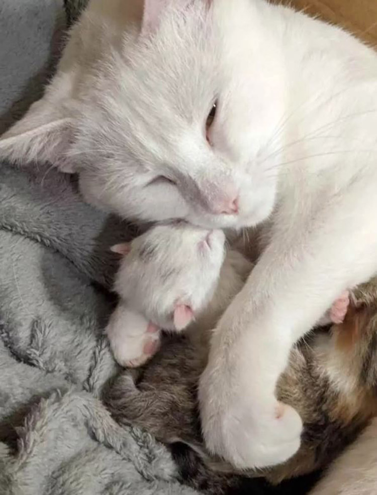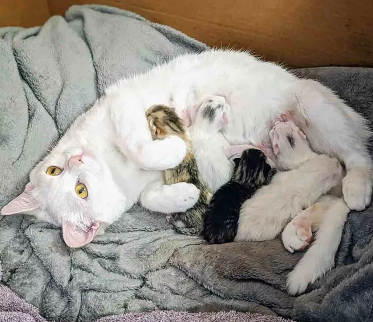 Before long this sweet kitty gave birth to 5 kittens and has proved herself to be a wonderful mother.