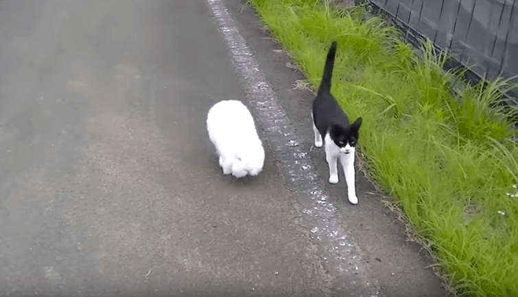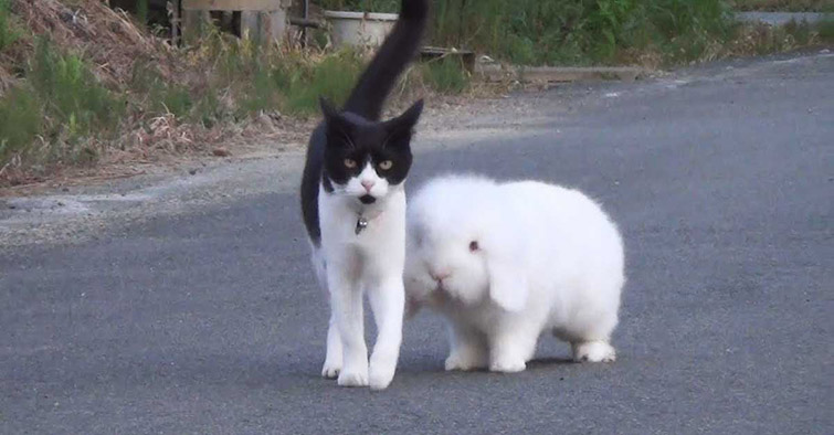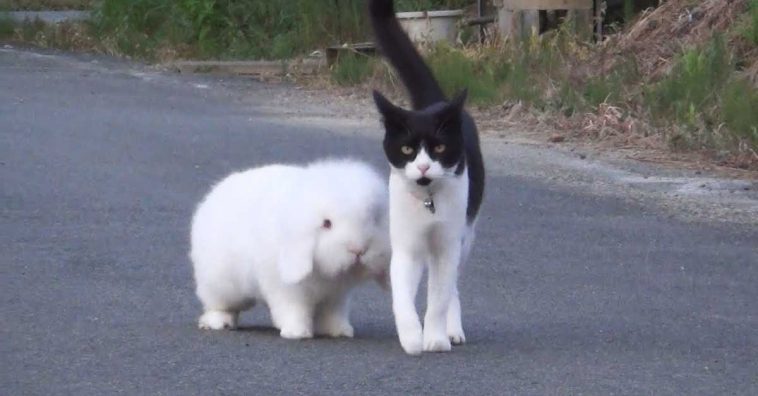 Based on the intimate walk this bunny and cat share together, we imagine they are the bestest of pals. They obviously enjoy being with each other despite their differences. For this reason, the neighbors call them “Brother & Sister”. Everyone loves to see the two hanging out together because they are so adorable and sweet.
