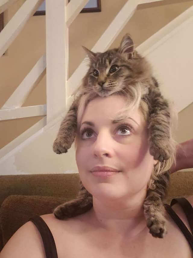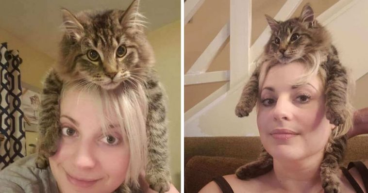 Freddy tends to get so relaxed up there that he starts to slip off, so Tunez often uses her hand to keep her cute feline hat. “When he’s had enough, he’ll slide down the side of your head and wrap himself around your neck, like a stole,” Tunez said.