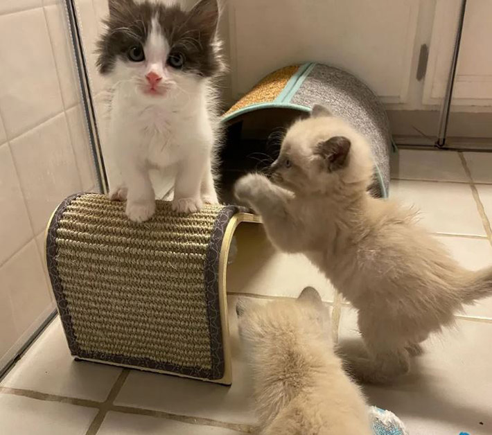 “Cassie and Ben are the most playful and spunky. Wayne is a little more cuddly, but he also loves to explore and was the first one to jump up onto the counter.”
