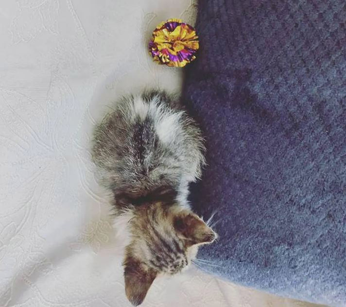 Matea took the kitten to the vet and discovered that he was severely underweight and only half the size that he was supposed to be.