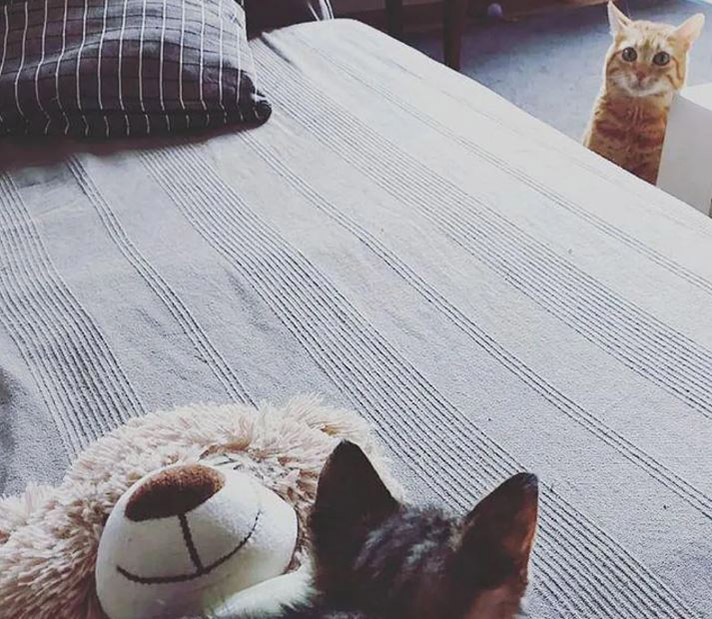 “He greets me every morning when I get up, and every afternoon when I come home from work by flopping on his head and rolling on his back, so I can rub his fluffy belly—it’s the cutest thing,” Matea shared with us.