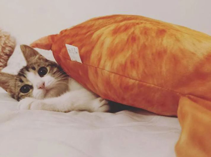Gizmo enjoys his assortment of blankets and pillows, and always naps with them for extra comfort.