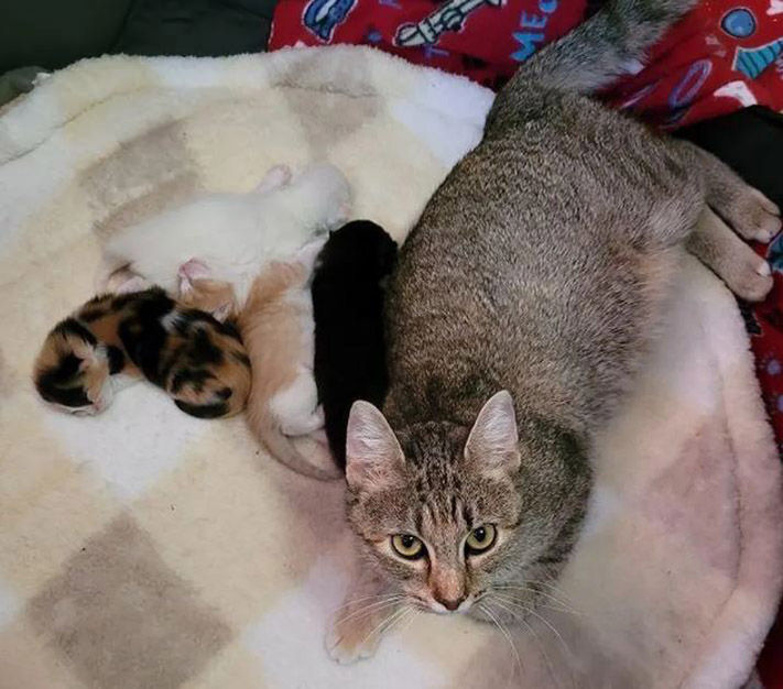 The cat needed a safe place to raise her litter of four, so Kayla and her mother Buffy, both volunteers for Coastal Bend Cat Rescue, reached out for assistance.