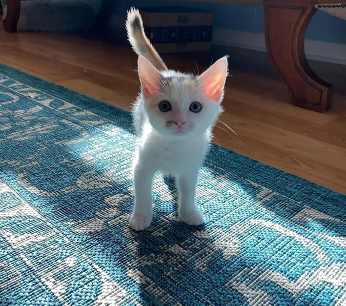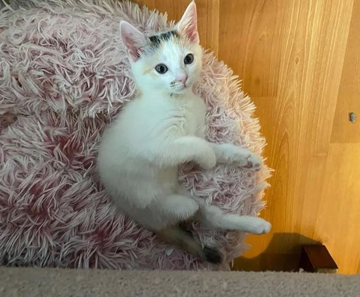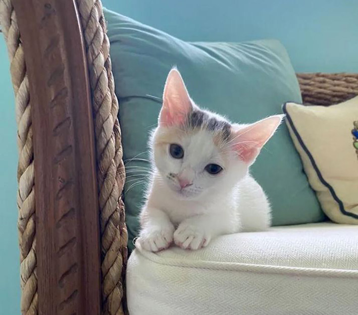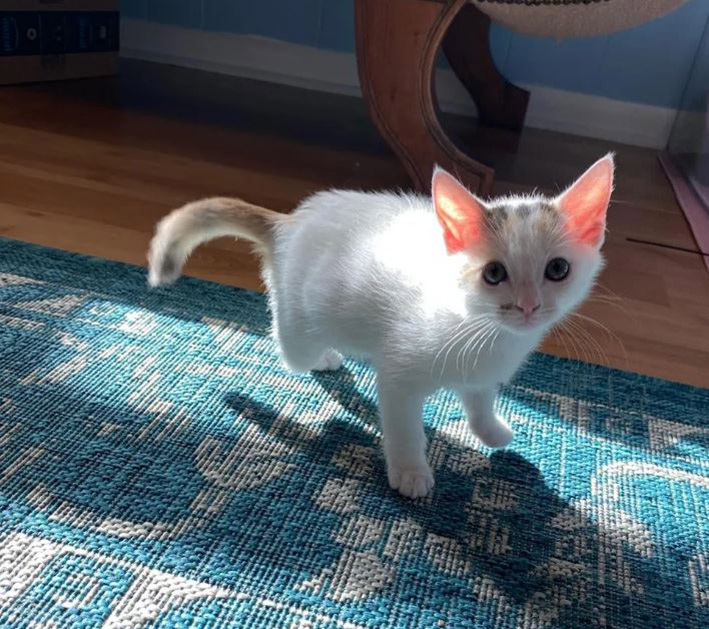 Jack has blossomed into a playful, sassy young cat. She enjoys the company of other kittens and tries to keep up with them during zoomies.