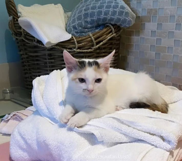 Dannielle took the kitten in without hesitation. She cleaned up the wound, gave her food and medication, and wrapped up the stump to help it heal.