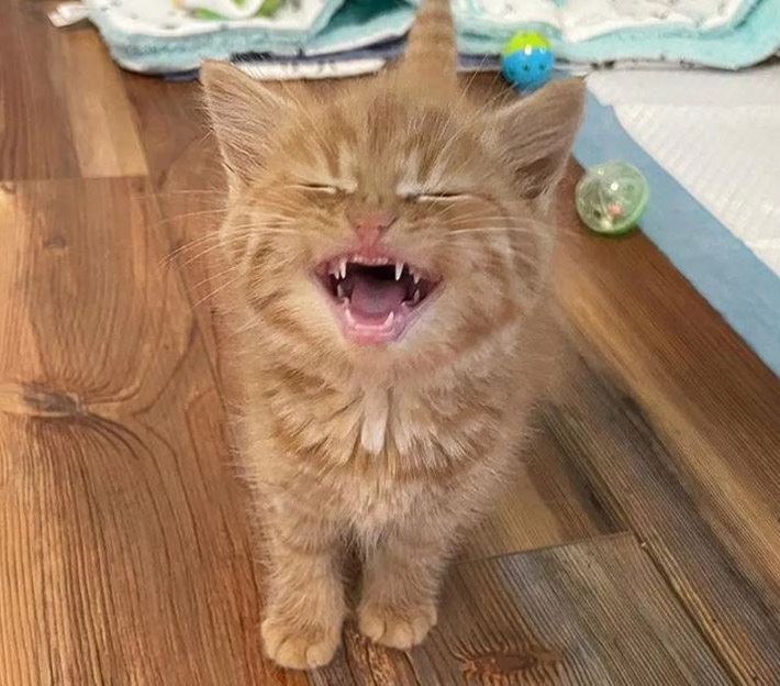 It was then the kitten discovered his tiny roar, and didn’t hesitate to put it to good use.