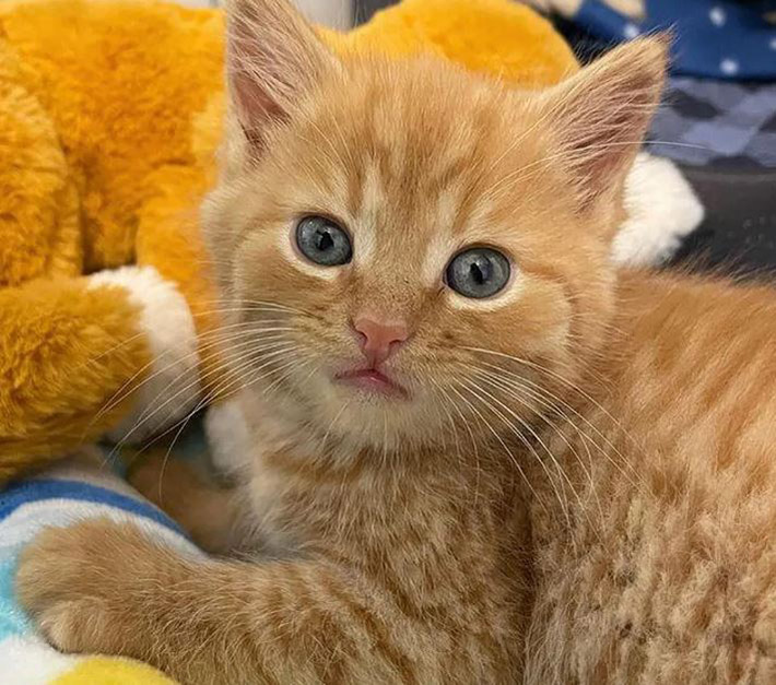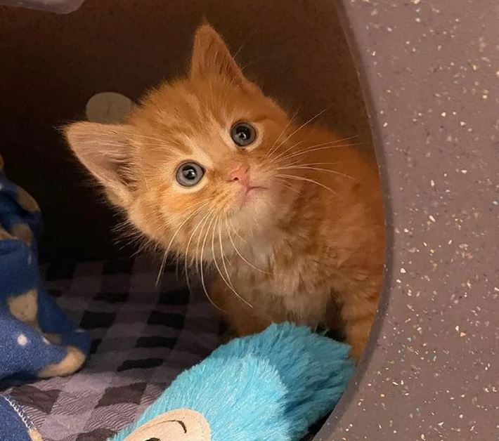 A little orange kitten was brought in to IndyHumane in Indianapolis, Indiana, for a chance at a better life. He was a bit shy and hissy upon arrival, and tried to hide under any cover he could find.