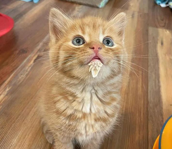 Butterball, the tiny but mighty little kitty, unapologetically meows (screams) at his people and won’t stop until he gets what he wants.