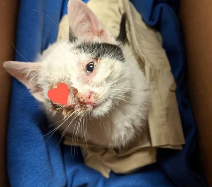 Brandy and her family, who volunteer for the rescue, took the kitten in to foster. He was in good spirits and very eager for attention and affection despite it all.