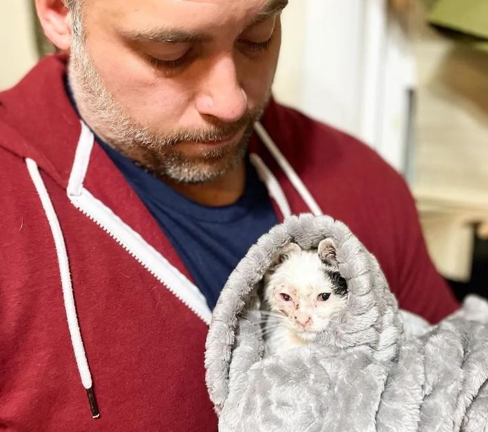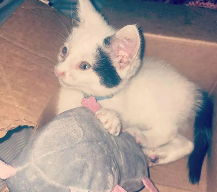 “Right when we took him out of the box, he was purring and so happy to be in a warm home. He was playful and spirited from his first evening with us. He had no clue he was in as rough of shape as he was,” Brandy shared with us.