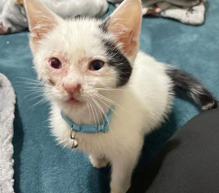 A stray kitten was found in poor shape and brought to Chicago Animal Care and Control (CACC). He was very frail, had a severe eye ulcer, and was in need of rescue.