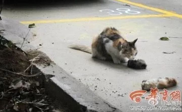 Nothing is worse than losing your own children. And it’s just as painful for animals as well, like one mother cat in Xi’an, China, whose two kittens were brutally stabbed and even decapitated on the street.