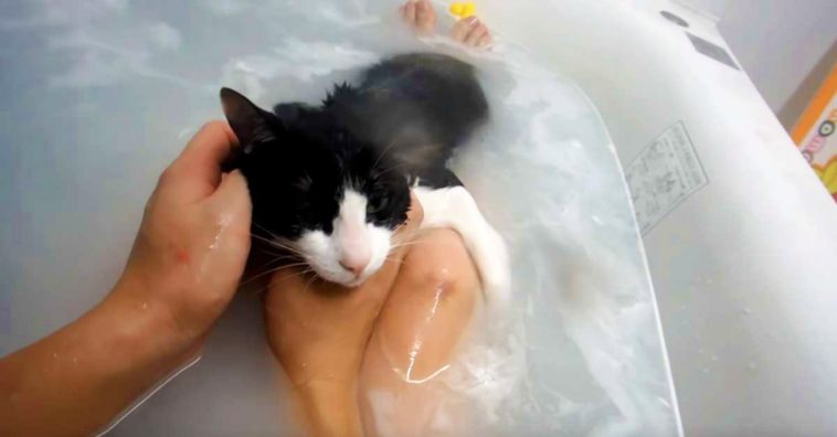 What comes to mind when you think of giving a cat a bath? Usually it means the bath from hell but not for this adorable black and white kitty from Japan. Moo the cat is quite the opposite because she loves to take a bath!