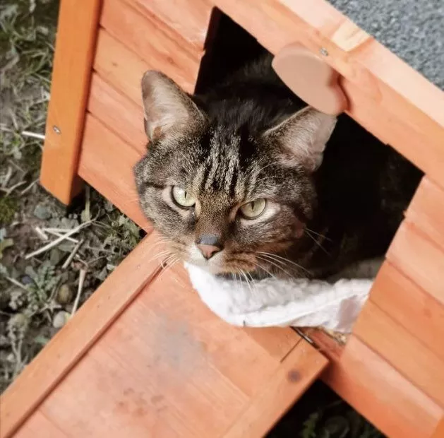 It made her so happy when she opened her window the following morning and saw that Tiger was already installed in his new house. He knew that she had put it there for him. She gradually gained Tiger’s trust and was finally able to pet him. It was truly a happy moment for all.
